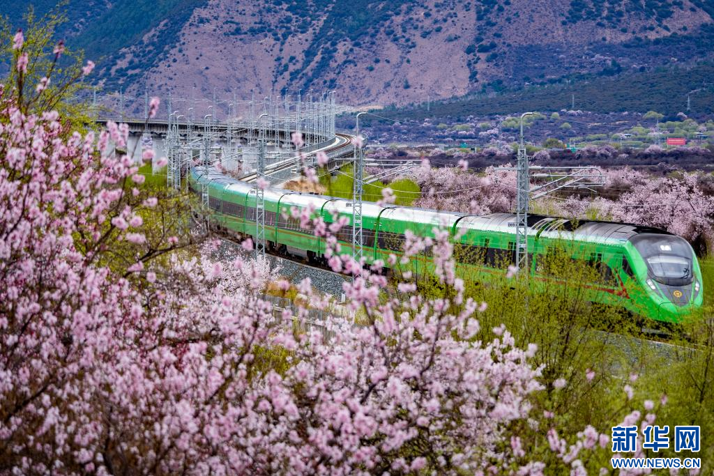 雪域高原桃花開,復(fù)興號上賞春光。拉林鐵路的車票,猶如一張賞花請柬,吸引了眾多游客前來雪域高原賞桃花。
