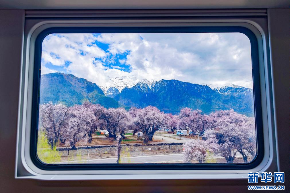 4月3日,從復(fù)興號上拍攝的桃花。新華網(wǎng) 旦增努布 攝