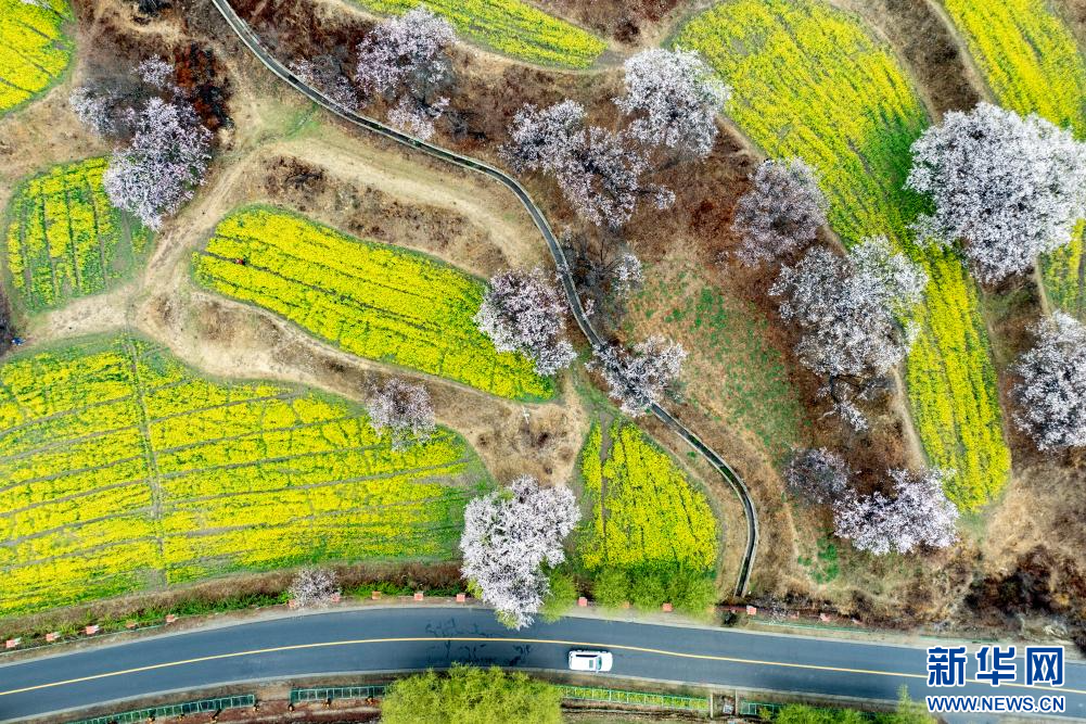 4月3日,林芝市巴宜區(qū)嘎拉村盛開的桃花(無人機(jī)照片)。新華網(wǎng) 旦增努布 攝