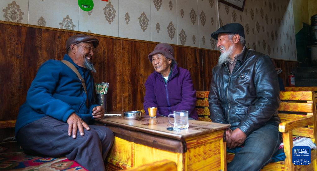 格桑玉珍(中)在茶館里和好友聊天(4月3日攝)。新華社記者 丁增尼達 攝