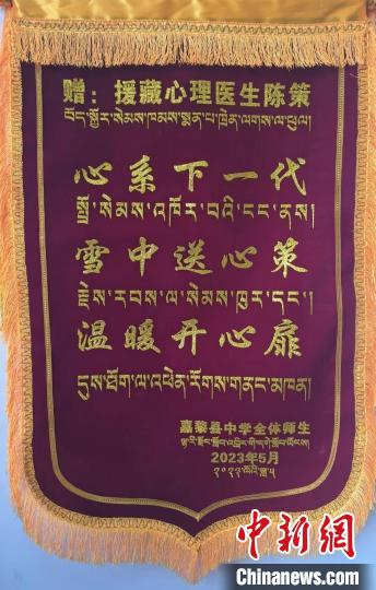 那曲市嘉黎縣中學(xué)全體師生贈送陳策的錦旗。受訪者 供圖
