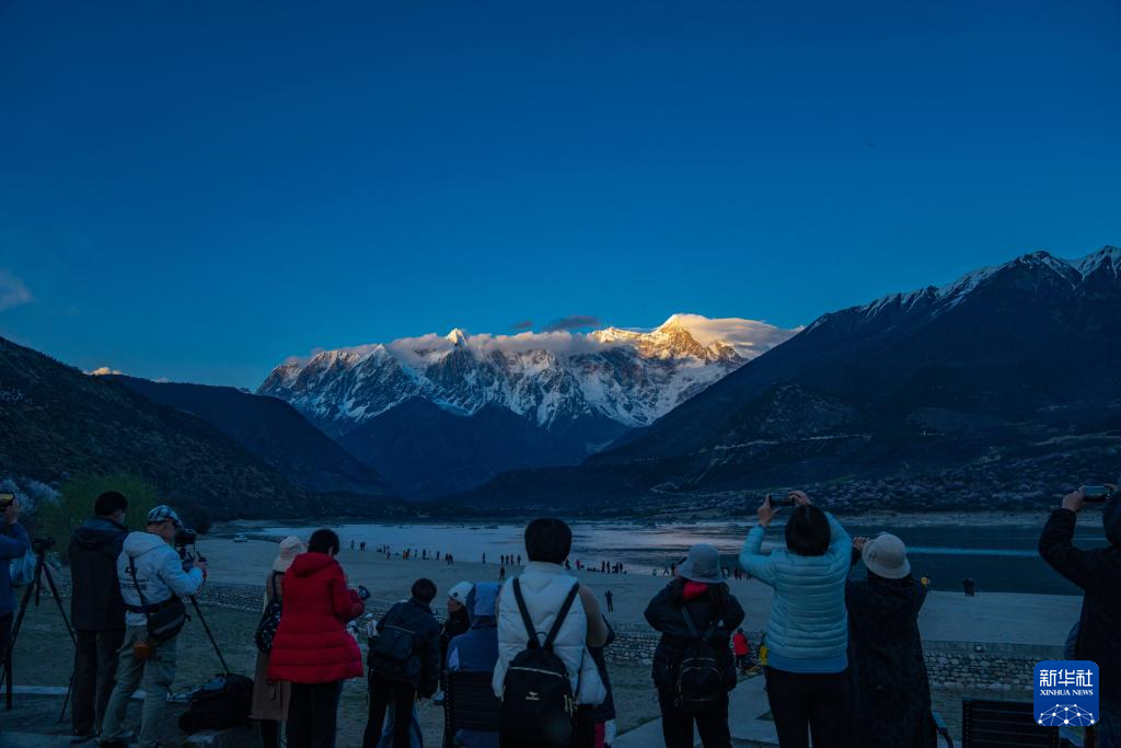 西藏林芝市米林市索松村是欣賞南迦巴瓦峰景觀的最佳位置之一。這里面向南迦巴瓦峰,腳下是蜿蜒的雅魯藏布江。林芝市第二十一屆桃花旅游文化節(jié)期間,雅魯藏布江邊的桃花次第盛開,與雪山、大江相襯,獨(dú)特的景色吸引著各地游客慕名而來,共赴一場“桃花之約”。