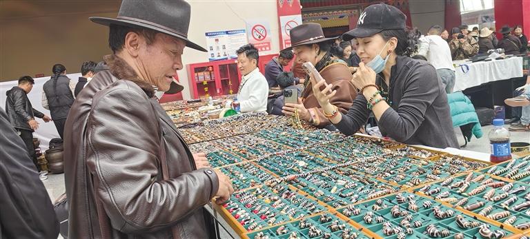 記者在展廳看到,參展商家攤位分布有序,前來購買各種珠寶、藝術(shù)品的顧客絡(luò)繹不絕?;顒?dòng)現(xiàn)場,匯聚了來自全國各地的珠寶商、藝術(shù)家、收藏家及投資者。博覽會(huì)期間,主辦方舉辦了珠寶、藝術(shù)品鑒定評(píng)估等商貿(mào)活動(dòng),以及珠寶藝術(shù)品講座、研討會(huì)等文化交流活動(dòng),為與會(huì)者提供了一個(gè)全面了解西藏珠寶及藝術(shù)品的機(jī)會(huì),同時(shí)也為珠寶商、藝術(shù)家和投資者搭建了一個(gè)交流與合作的平臺(tái)。文/圖 記者 張雪芳