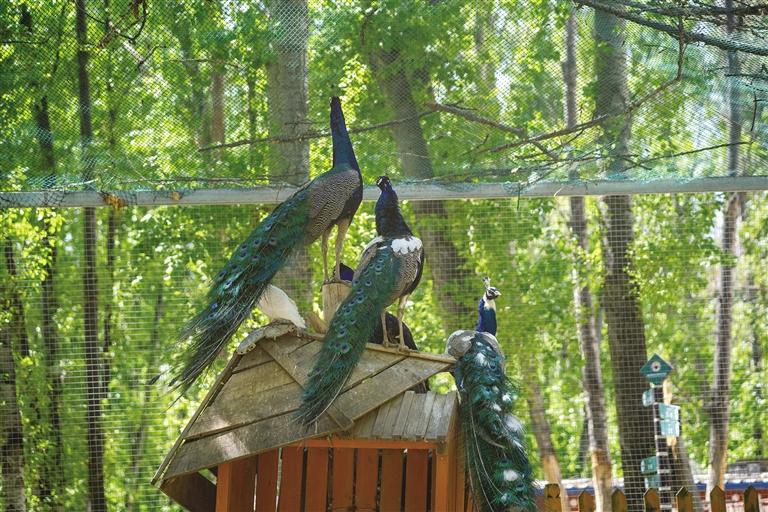 乘著觀光車前行,一路都被綠葉青草圍繞。觀賞完動(dòng)物,記者一行在動(dòng)物園內(nèi)的餐廳就餐,等待美食的過程中,點(diǎn)一杯咖啡或甜茶,看著藍(lán)天白云和滿眼綠意,不時(shí)還能聽到孔雀啼鳴,別有一番滋味。