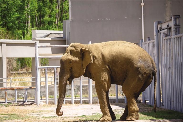 大象館是曲水動(dòng)物園的“明星場(chǎng)館”?!爸Z羅、諾羅……”聽到飼養(yǎng)員阿尼的呼喚,大象立即調(diào)轉(zhuǎn)身子,朝著阿尼走了過來。“‘諾羅’是泰語,是在呼喊大象?!卑⒛嵴f。