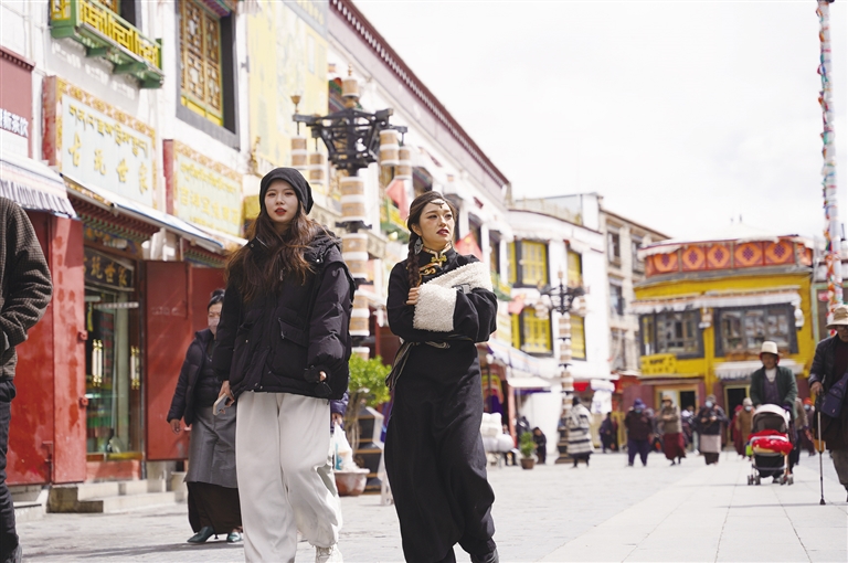 游客在八廓街漫步。