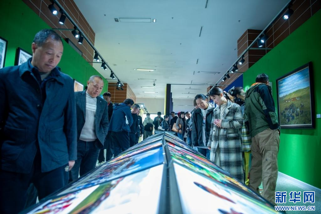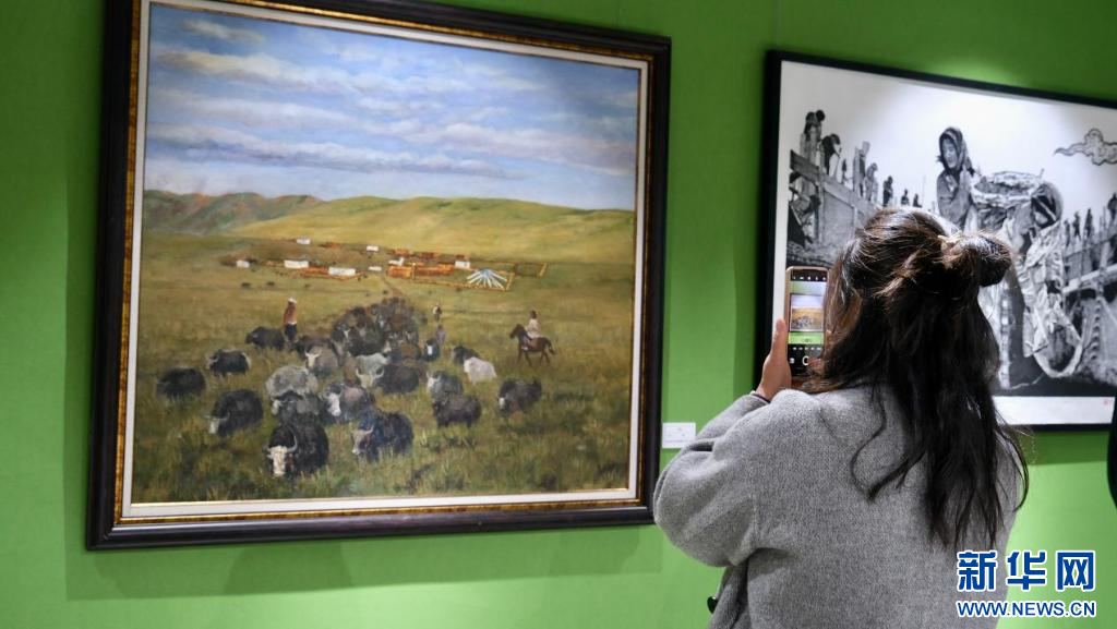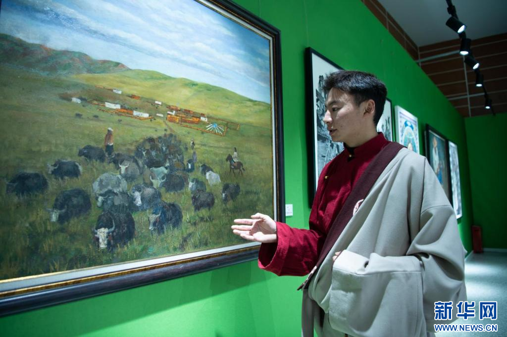 4月28日,第五屆民族團結書法、美術、攝影、微視頻大賽作品展現(xiàn)場。新華網(wǎng) 旦增努布 攝