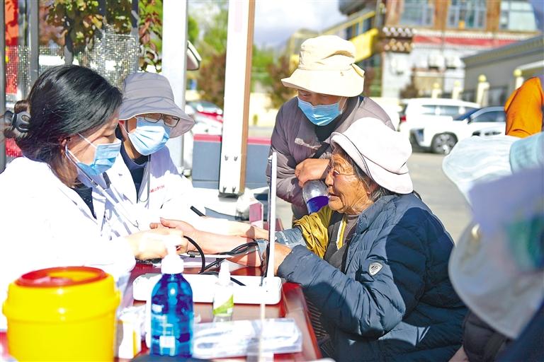 上圖:5月11日,西藏司法警官醫(yī)院聯(lián)合拉薩市城關(guān)區(qū)扎細(xì)社區(qū)黨支部在轄區(qū)開展義診活動(dòng),為市民群眾免費(fèi)檢查身體,普及健康知識(shí)。 本報(bào)記者 潘多 攝