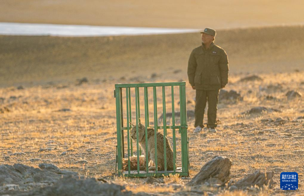 野生動(dòng)物專業(yè)管護(hù)隊(duì)員準(zhǔn)備將一頭猞猁放歸自然(5月12日攝)。新華社記者 丁增尼達(dá) 攝