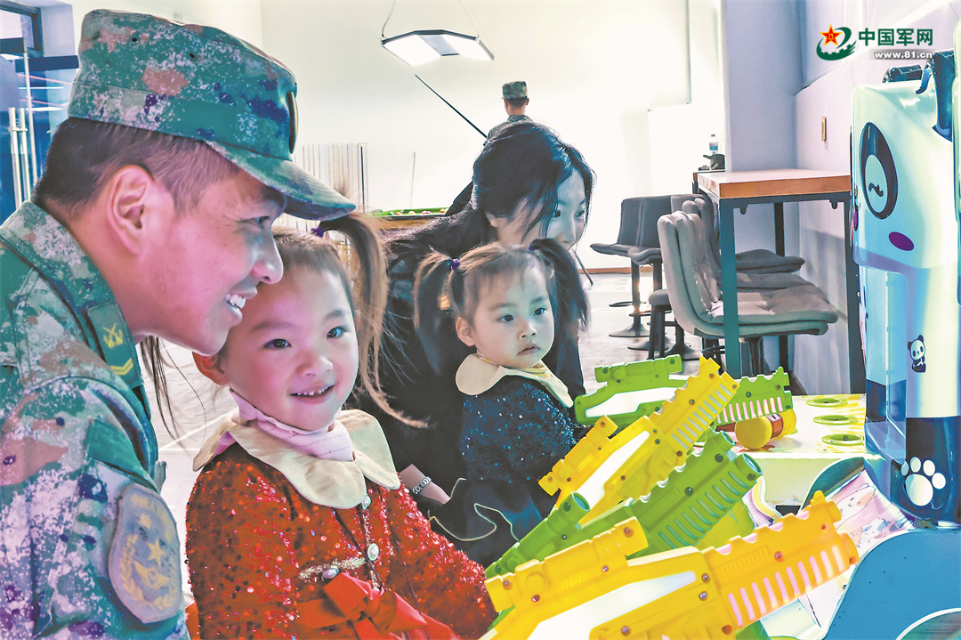 該旅營區(qū)環(huán)境已今非昔比,各種設(shè)施日益完善,官兵及其家人在軍營團(tuán)聚,臉上滿是幸福。王俊杰夫婦陪同孩子在生活服務(wù)中心玩耍。彭融瑞 攝