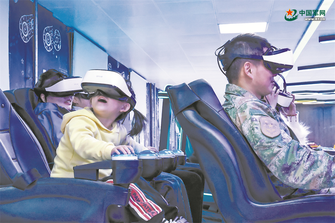 該旅營區(qū)環(huán)境已今非昔比,各種設(shè)施日益完善,官兵及其家人在軍營團(tuán)聚,臉上滿是幸福。該旅官兵帶著家人體驗(yàn)VR模擬設(shè)備。張子欽 攝