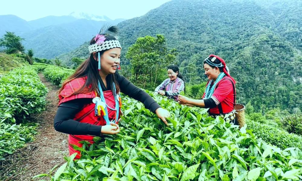 沿著蜿蜒的盤山公路,來到達(dá)木珞巴民族鄉(xiāng)卡布村革林茶場,還未走近,便能聞到山中飄來的清新茶香和泥土芬芳,令人神清氣爽。