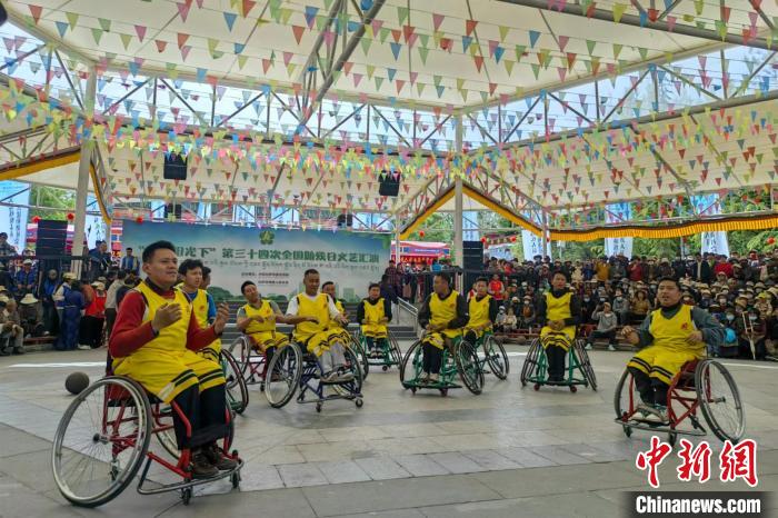 圖為助殘日當(dāng)天,西藏輪椅籃球隊(duì)成員表演節(jié)目《健康西藏動起來》。西藏自治區(qū)殘聯(lián)供圖