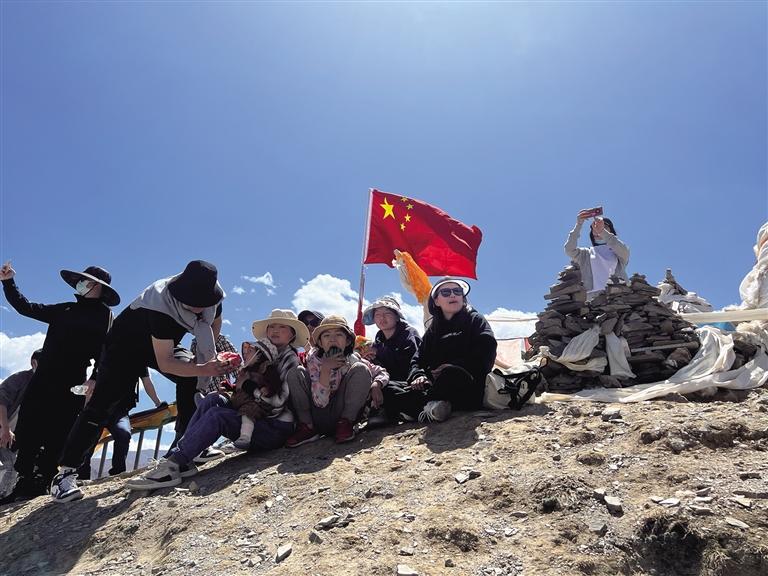 1小時46分后,記者終于登頂南山。在山巔,“徒步搭子”們相互拍照留念,慶祝登頂?shù)南矏?。市民白瑪曲珍說:“我從去年夏天開始帶著女兒徒步。走走停停中,發(fā)現(xiàn)孩子既能接觸大自然又能強身健體,同時戶外活動還讓孩子更加堅韌、開朗,之后便一發(fā)不可收拾。我和女兒都很享受徒步的時光。”