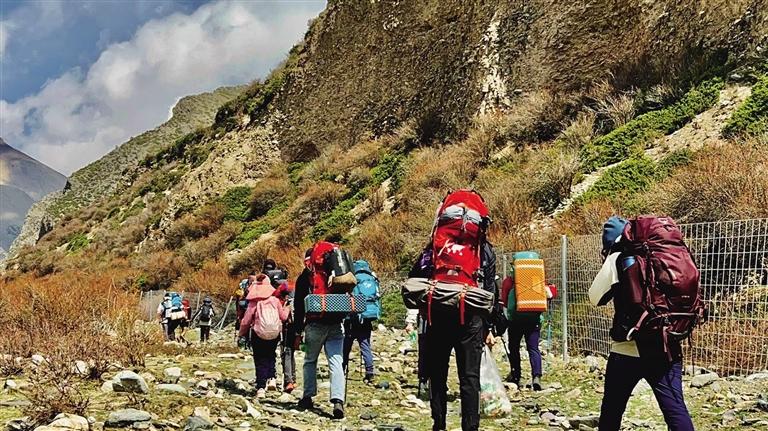 旦增告訴記者,徒步看似簡單,但大自然瞬息萬變,出發(fā)之前必須做好全方位的準備——制定詳細、合理的行程計劃,關注天氣預報;檢查裝備和自身健康狀況,告知親友行程安排;學習掌握基本的野外生存技能和急救知識,學習導航和定位技巧。出發(fā)后,盡量避開可能有危險的地形或路線,避免單獨行動或夜間行動,同時一定要尊重當?shù)氐娘L俗,避免接觸不明物質或危險動物等。