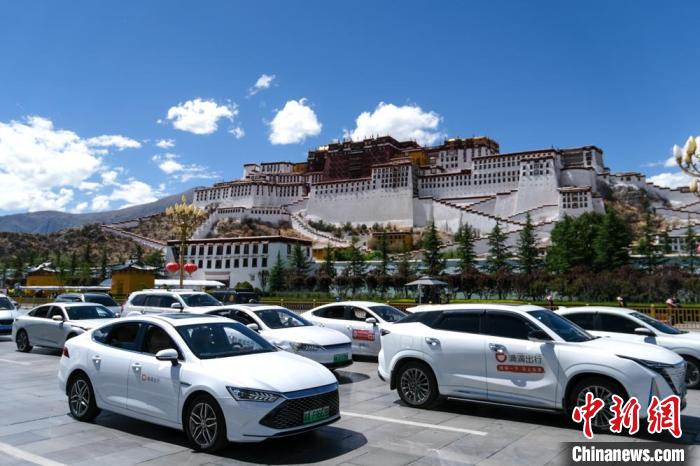 5月28日,懸掛新能源汽車專用號牌(俗稱綠牌)的汽車途經(jīng)拉薩布達(dá)拉宮前。中新社記者 江飛波 攝