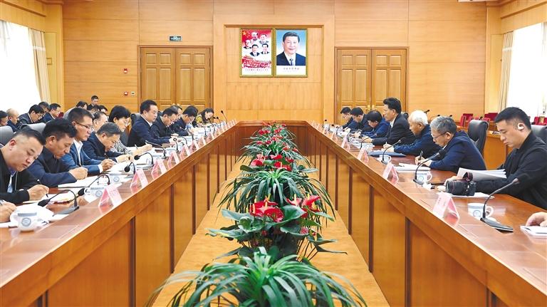 日前,自治區(qū)黨委書記王君正在拉薩與全國人大常委會(huì)副委員長洛桑江村率隊(duì)的全國人大常委會(huì)調(diào)研組一行座談。這是座談現(xiàn)場。 本報(bào)記者 李洲 攝
