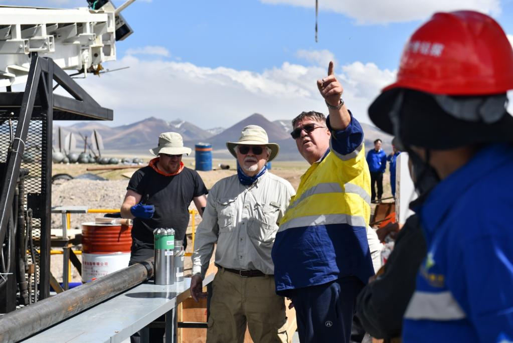 外國科學(xué)家指導(dǎo)鉆探技術(shù)人員架設(shè)湖泊鉆探平臺(6月1日攝)。新華社記者晉美多吉 攝