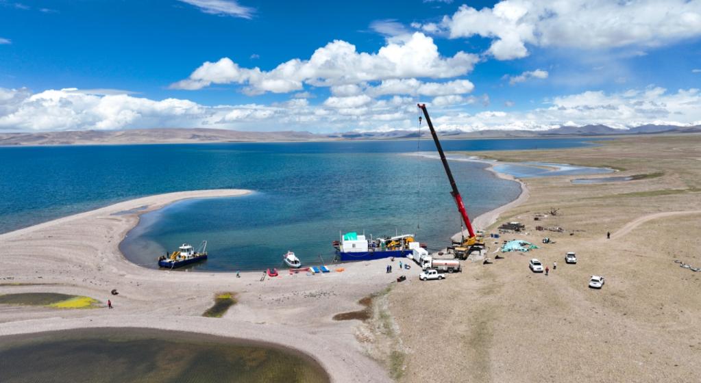 近日,中國科學(xué)院青藏高原研究所湖泊與環(huán)境變化研究團(tuán)隊(duì)與德國、瑞士、英國、美國等多國科學(xué)家和鉆探技術(shù)人員組成的聯(lián)合科考隊(duì),在西藏納木錯(cuò)開展科學(xué)考察活動(dòng)??蒲腥藛T在納木錯(cuò)開展湖泊巖芯鉆探,為開展青藏高原過去一百萬年以來氣候環(huán)境變化研究提供新的科學(xué)依據(jù)。