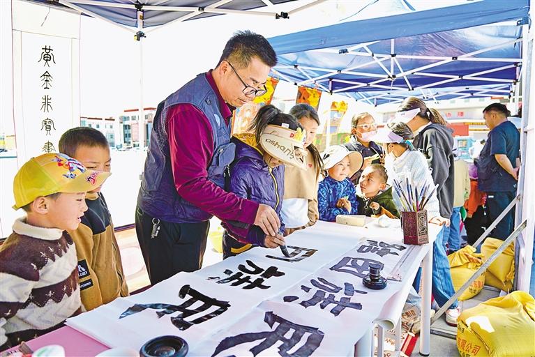 在阿里地區(qū)“文化和自然遺產(chǎn)日”活動(dòng)中,孩子們?cè)诟惺軙?shū)法魅力。記者 達(dá)珍 洛桑旦增 攝