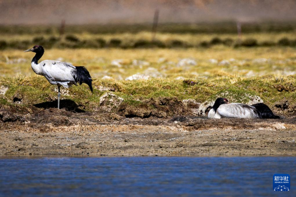 黑頸鶴在濕地孵蛋(6月7日攝)。新華社記者 姜帆 攝
