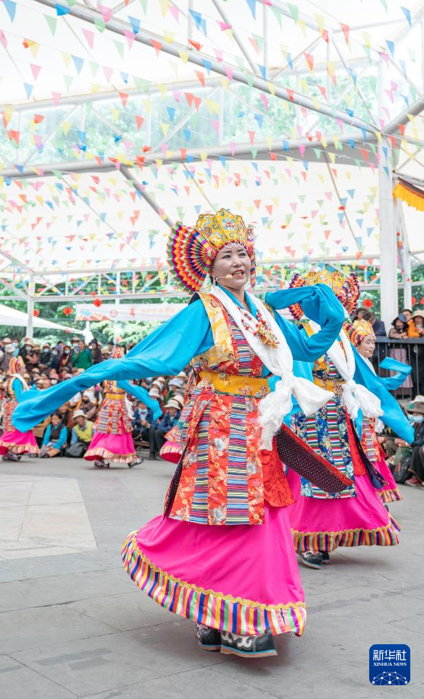 6月11日,藏戲藝人在拉薩市宗角祿康公園表演。新華社記者 丁增尼達(dá) 攝