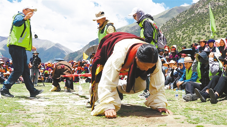 “‘繽紛四季·多彩林周’活動(dòng)內(nèi)容實(shí)在是太豐富了,我們沿途觀賞到了美景,而且還體驗(yàn)了西藏民俗風(fēng)情,現(xiàn)場(chǎng)看到村民們擠牦牛奶、手工制作奶制品、指尖技藝制作酥油花等。讓我們感到震驚的是藏族大哥、大姐的力氣真是太大了,能用繩子拉動(dòng)越野車,扛起百斤重的石頭,給我們帶來了滿滿的視覺盛宴。我是第三次進(jìn)藏,這次的收獲最多,讓我體驗(yàn)到了不一樣的西藏。”來自北京的游客張先生興奮地說。