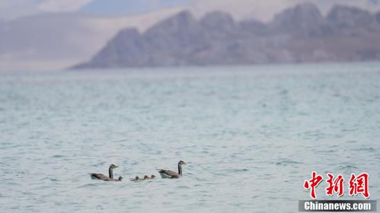 錯(cuò)鄂湖鳥(niǎo)島斑頭雁一家。 貢確 攝