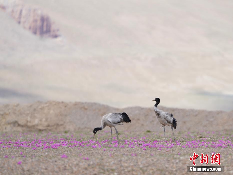 6月12日,西藏那曲市申扎縣黑頸鶴在花叢中覓食。申扎縣,平均海拔超過(guò)4500米,是黑頸鶴在中國(guó)的主要繁殖地之一。每年4月到6月,成群的黑頸鶴會(huì)來(lái)到這里,筑巢、孵化、養(yǎng)育下一代。近年來(lái),為了保護(hù)這些珍貴的生靈,申扎縣采取了一系列措施,設(shè)立了監(jiān)測(cè)站,對(duì)黑頸鶴的棲息地進(jìn)行24小時(shí)監(jiān)控,確保它們的繁殖不受干擾。黑頸鶴是國(guó)家一級(jí)保護(hù)動(dòng)物,也是世界上唯一一種生長(zhǎng)、繁殖在高原的鶴類(lèi)。貢嘎來(lái)松 攝