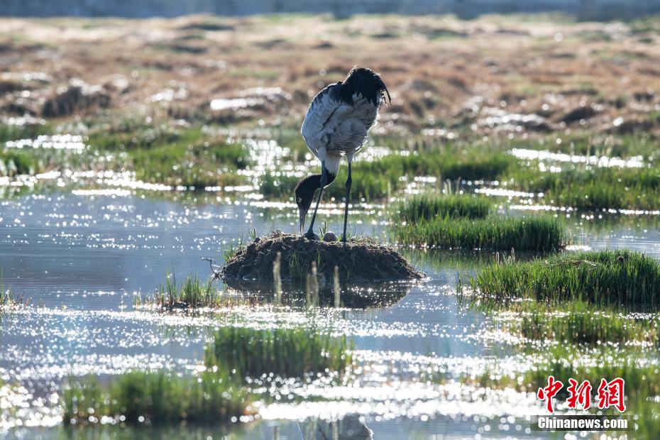 6月12日,西藏那曲市申扎縣濕地里一只黑頸鶴正準(zhǔn)備孵蛋。申扎縣,平均海拔超過(guò)4500米,是黑頸鶴在中國(guó)的主要繁殖地之一。每年4月到6月,成群的黑頸鶴會(huì)來(lái)到這里,筑巢、孵化、養(yǎng)育下一代。近年來(lái),為了保護(hù)這些珍貴的生靈,申扎縣采取了一系列措施,設(shè)立了監(jiān)測(cè)站,對(duì)黑頸鶴的棲息地進(jìn)行24小時(shí)監(jiān)控,確保它們的繁殖不受干擾。黑頸鶴是國(guó)家一級(jí)保護(hù)動(dòng)物,也是世界上唯一一種生長(zhǎng)、繁殖在高原的鶴類(lèi)。貢嘎來(lái)松 攝