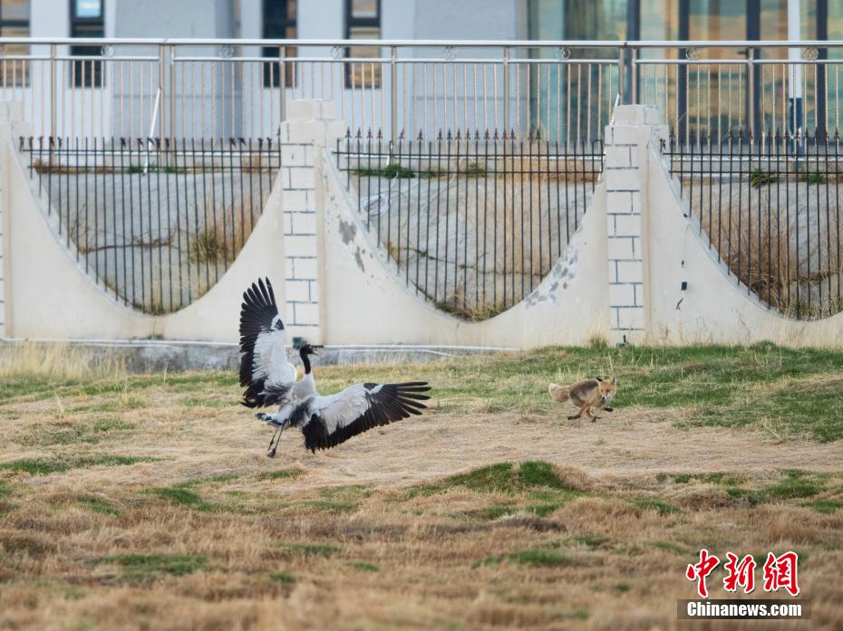 6月12日,西藏那曲市申扎縣濕地里一只黑頸鶴在驅(qū)趕狐貍。申扎縣,平均海拔超過(guò)4500米,是黑頸鶴在中國(guó)的主要繁殖地之一。每年4月到6月,成群的黑頸鶴會(huì)來(lái)到這里,筑巢、孵化、養(yǎng)育下一代。近年來(lái),為了保護(hù)這些珍貴的生靈,申扎縣采取了一系列措施,設(shè)立了監(jiān)測(cè)站,對(duì)黑頸鶴的棲息地進(jìn)行24小時(shí)監(jiān)控,確保它們的繁殖不受干擾。黑頸鶴是國(guó)家一級(jí)保護(hù)動(dòng)物,也是世界上唯一一種生長(zhǎng)、繁殖在高原的鶴類(lèi)。貢嘎來(lái)松 攝