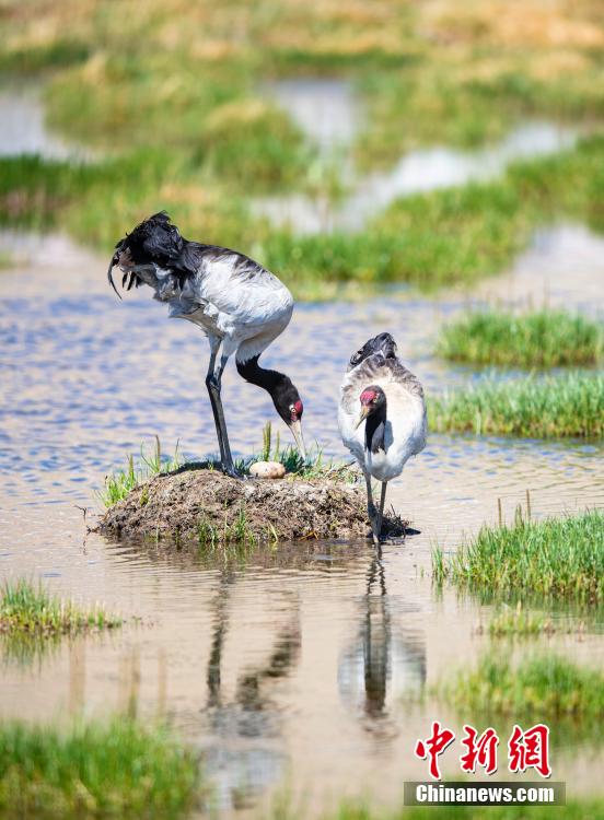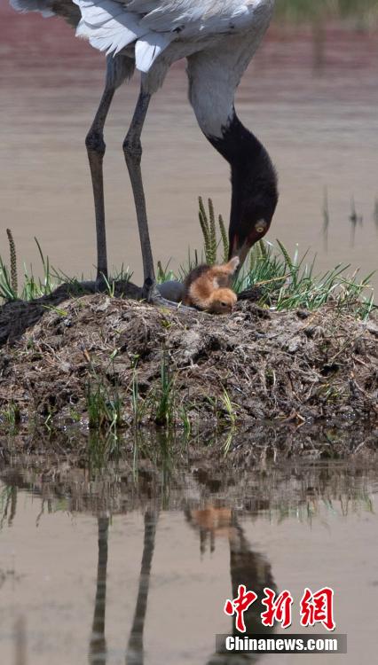 6月16日,在海拔4700米的西藏那曲市申扎縣,經過34天的漫長孵化期,一對黑頸鶴夫婦終于等來了自己的小黑頸鶴成功破殼出生。值得一提的是,黑頸鶴寶寶的誕生日也是2024年的父親節(jié),黑頸鶴父親在節(jié)日當天喜獲最珍貴的禮物。據悉,黑頸鶴每窩通常產卵1-2枚,孵化期通常要33到35天。中新社記者 貢嘎來松 攝