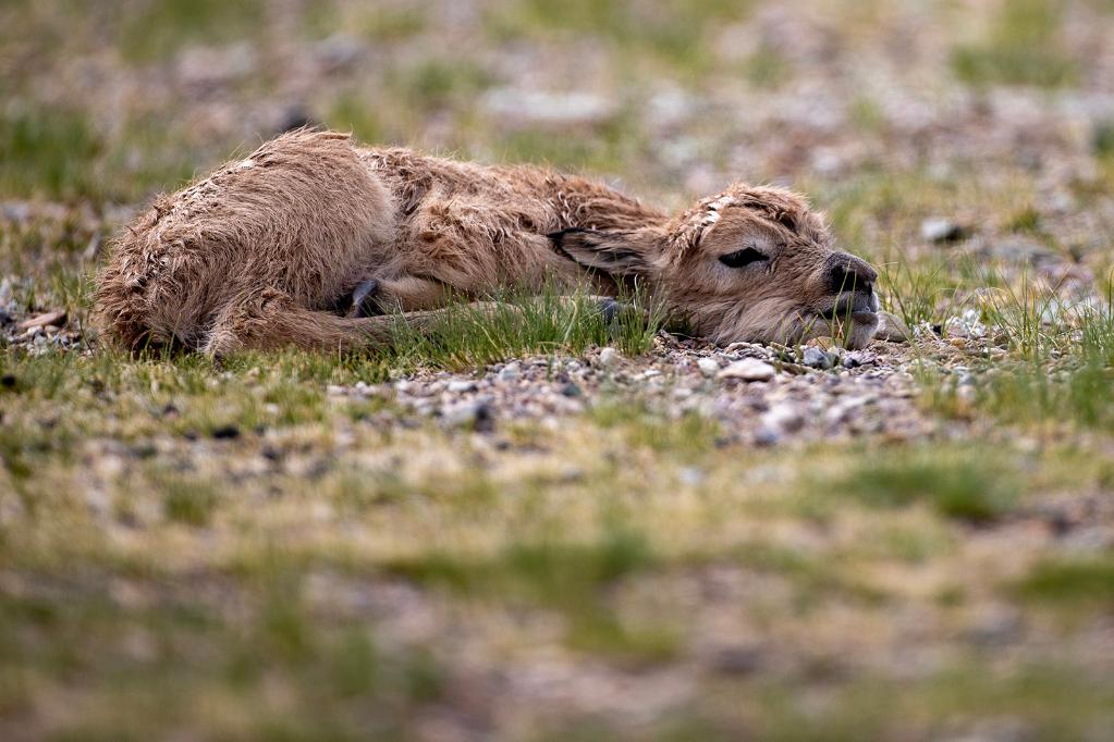 2024年6月17日,羌塘國(guó)家級(jí)自然保護(hù)區(qū)境內(nèi)的西藏那曲市申扎縣買巴鄉(xiāng)魯確塘草原上一只剛出生不久的小藏羚羊。