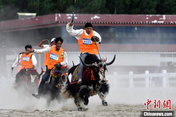 6月23日,拉薩首屆農(nóng)牧民運(yùn)動(dòng)會(huì)上的賽牦牛比賽。李林 攝