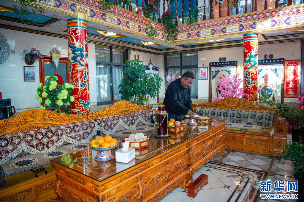6月24日,扎西曲登社區(qū)村民在家準(zhǔn)備迎接游客。新華網(wǎng) 旦增努布 攝