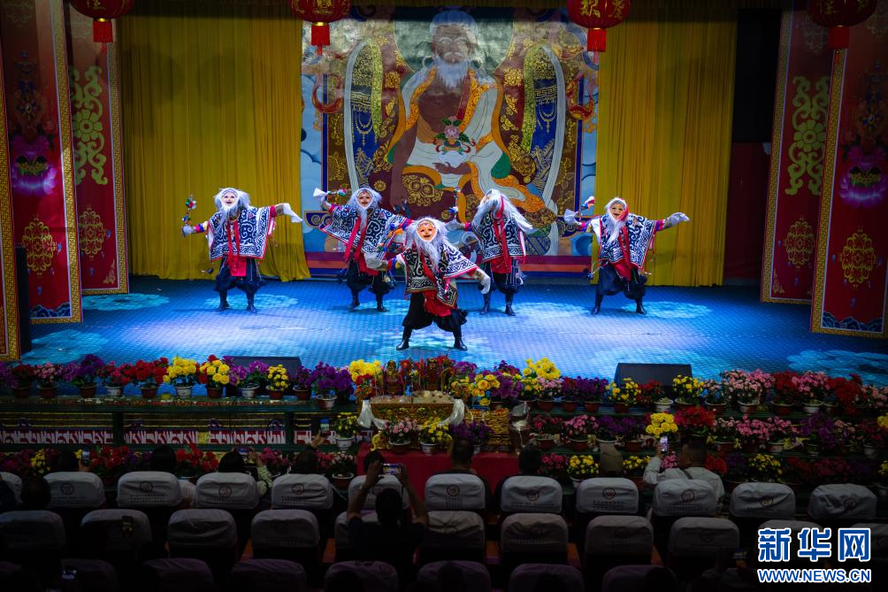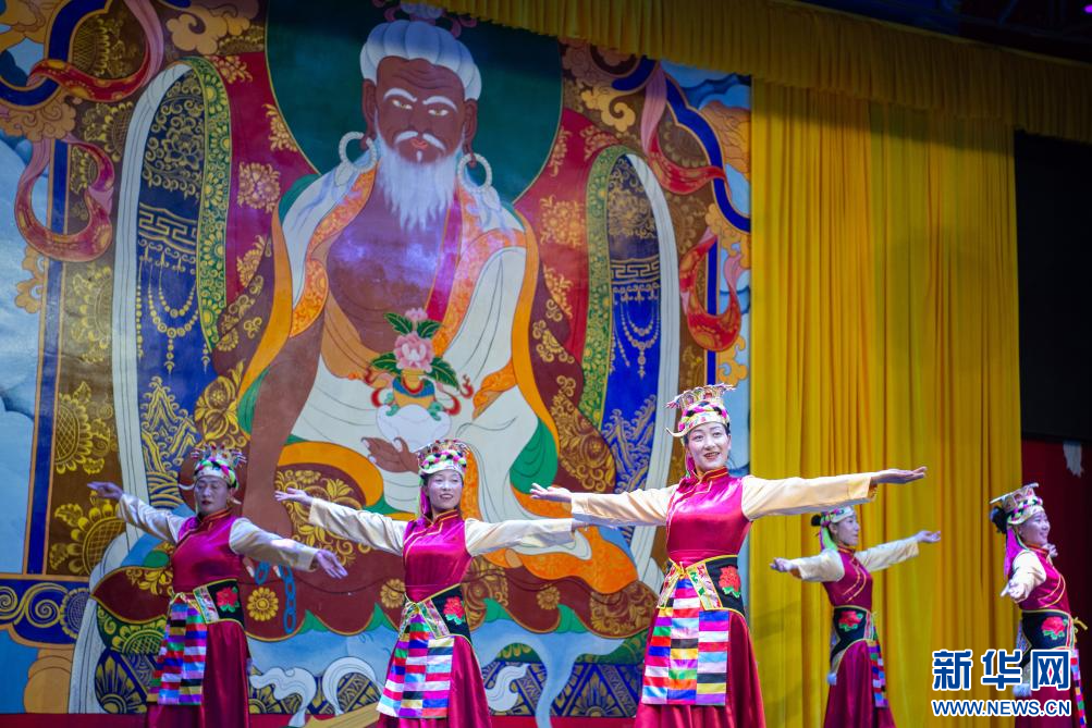 6月24日,群眾在國(guó)家級(jí)非物質(zhì)文化遺產(chǎn)雅礱扎西雪巴藏戲傳習(xí)基地表演傳統(tǒng)舞蹈節(jié)目。新華網(wǎng) 旦增努布 攝