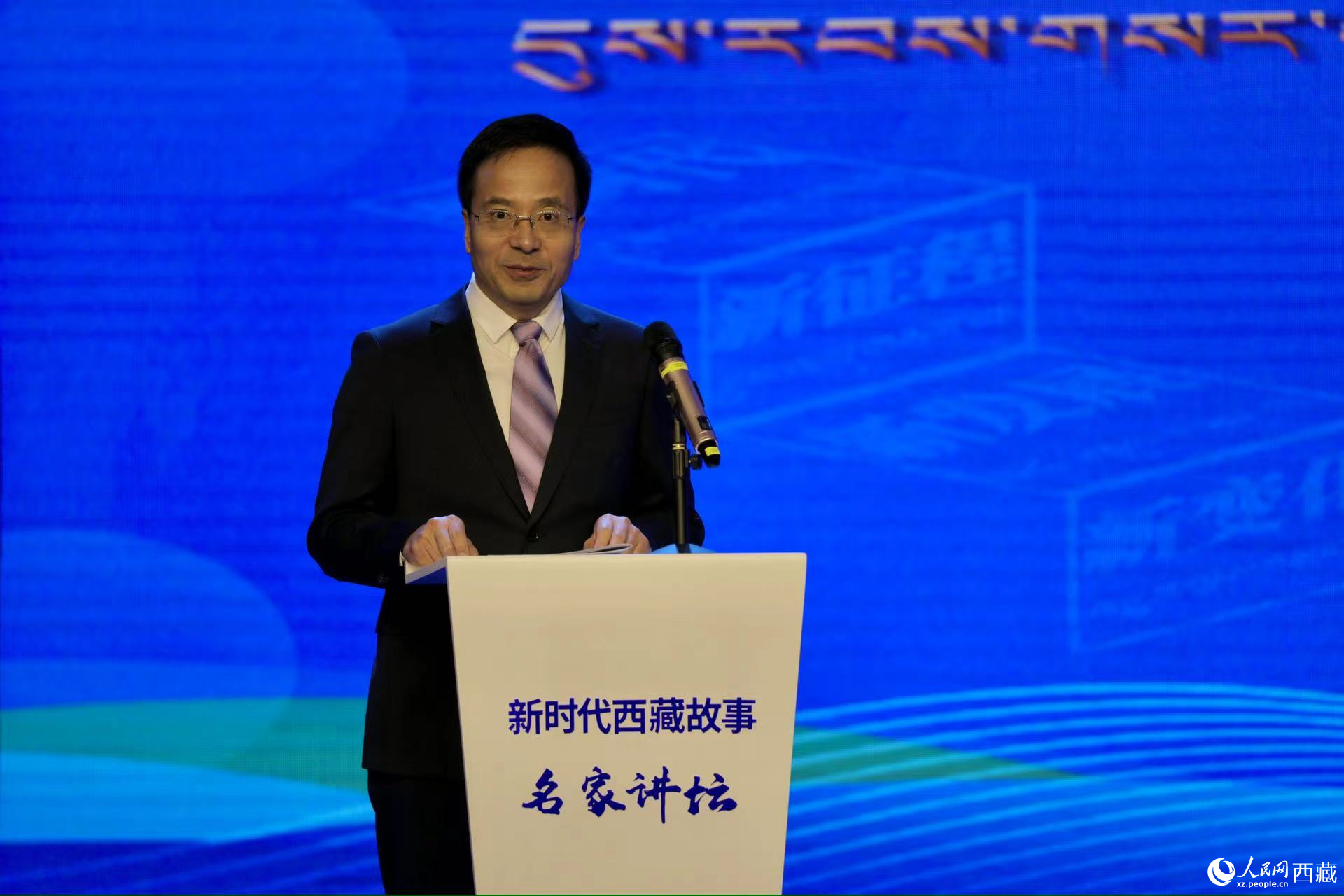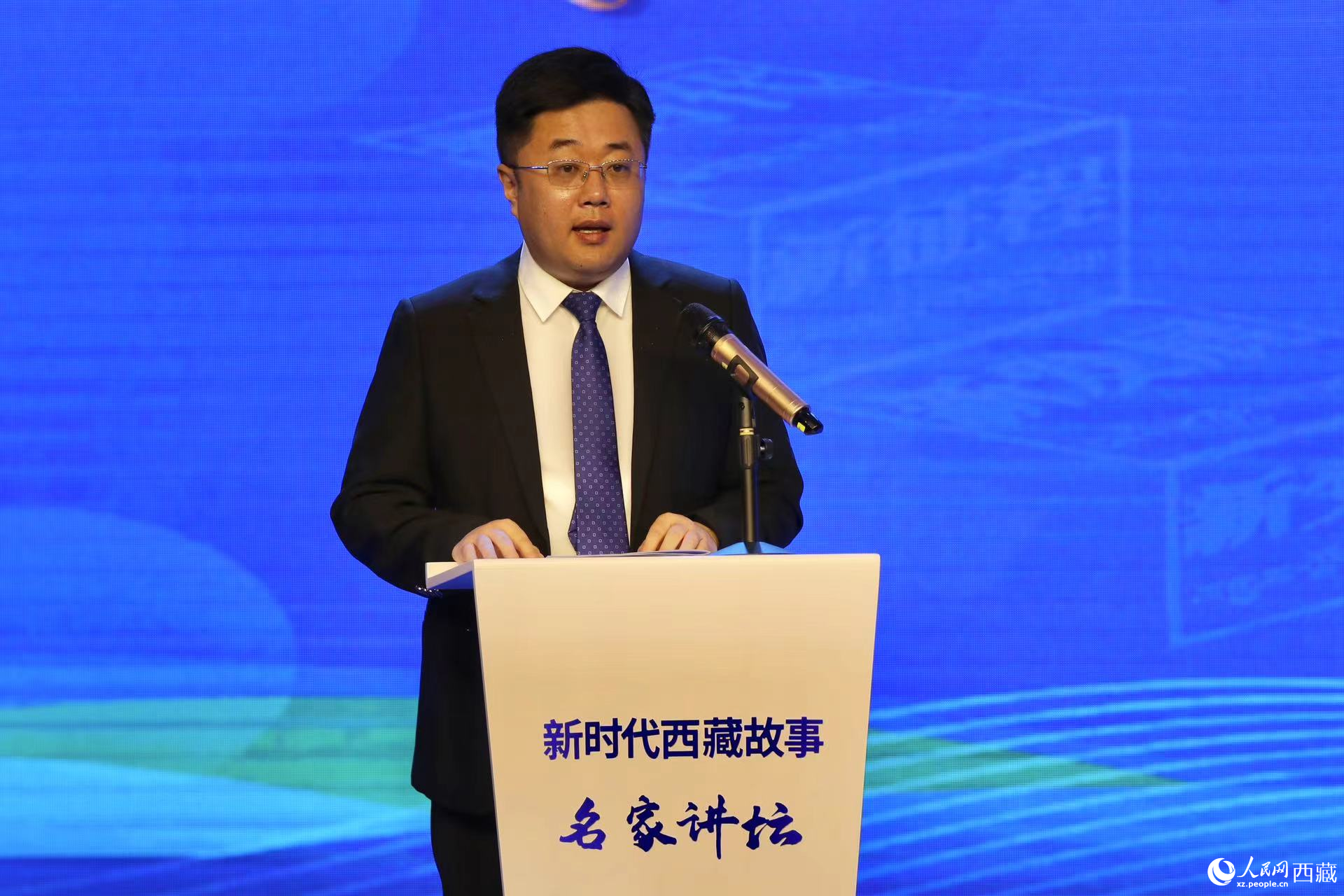 西藏自治區(qū)黨委宣傳部副部長(zhǎng),西藏自治區(qū)社會(huì)科學(xué)院黨組書(shū)記,中央和國(guó)家機(jī)關(guān)第七批、第八批援藏干部孫向軍作主題演講。人民網(wǎng)記者 次仁羅布攝