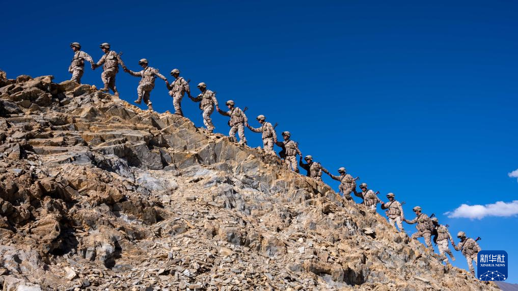 西藏阿里軍分區(qū)普爾楚邊防連秋迪儉革拉哨所巡邏官兵前往海拔5700米的點(diǎn)位進(jìn)行巡邏(6月29日攝)。新華社發(fā)(戴學(xué)武 攝)