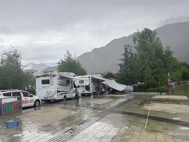 隨著公路的修建,自駕成了不少人的進(jìn)藏方式。游客紛紛表示,旅行的美景都在路上,選擇自駕不但有很多時(shí)間慢慢欣賞沿途美景,還能獲得更多的自由。隨著基礎(chǔ)設(shè)施的日益完善,進(jìn)藏的路上除汽車(chē)外,還能看見(jiàn)徒步、自行車(chē)、摩托車(chē)、電瓶車(chē)、挖掘機(jī)等多種多樣的進(jìn)藏方式。在拉薩某處停車(chē)場(chǎng)內(nèi),摩托車(chē)、房車(chē)、自行車(chē)規(guī)范停放,各省份牌照比比皆是。自駕而來(lái)的人們?cè)谲?chē)旁搭帳篷,做午飯。相較于飛機(jī)或火車(chē),自駕游多了幾分煙火氣。
