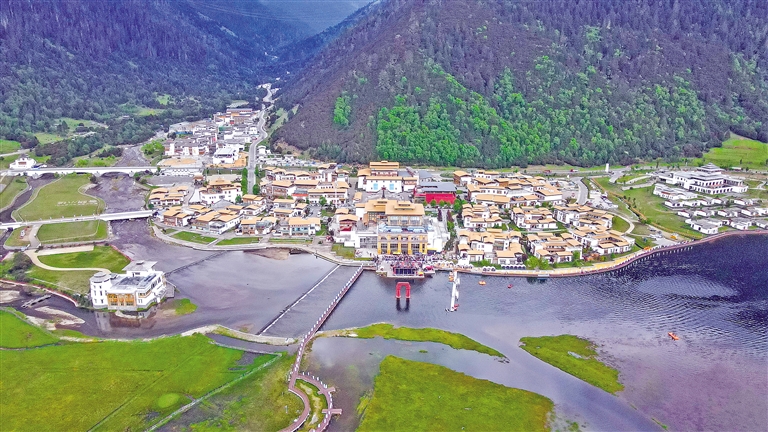 廣東省對(duì)口支援建設(shè)的巴宜區(qū)魯朗國際旅游小鎮(zhèn)鳥瞰圖(局部)。