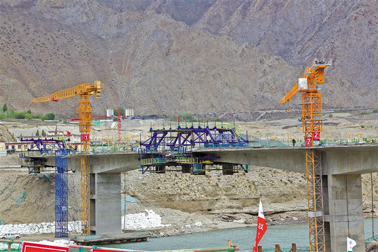 建設(shè)中的廣東援藏項(xiàng)目—朗縣惠州大橋。