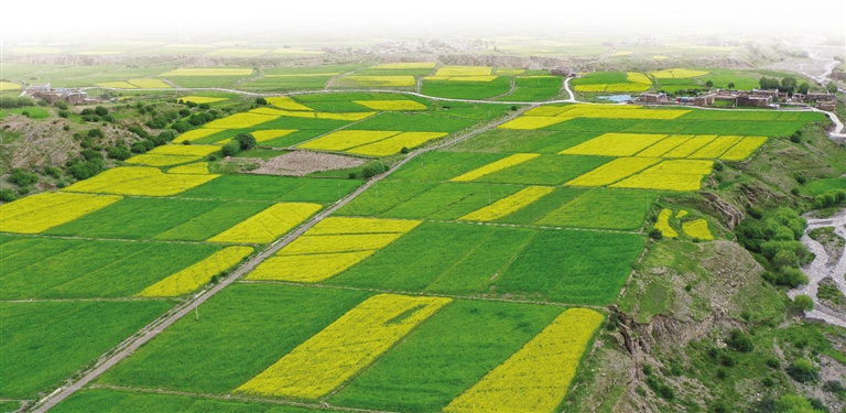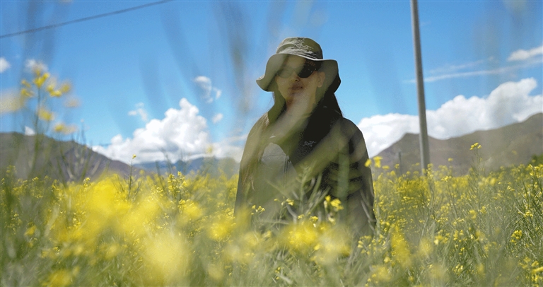 7月初,記者一行驅車從拉薩出發(fā),在開往錯那市的路上,經(jīng)過了瓊結縣百畝油菜花和隆子縣錯落有致的油菜花田。烈日下,油菜花是這片大地的“主角”,是山南市每年盛夏從不缺席的芬芳。一路走來,油菜花肆意地盛開在道路兩旁、村莊里、半山腰……微風拂過,花朵搖曳生姿綻放著,從稍遠處看,俗坡奴村錯落分布在黃綠交錯的田野中,仿若一幅美麗清新的鄉(xiāng)村田野詩畫。此時,看風景的行人紛紛鉆進花田中,仿佛是跟油菜花“爭芳斗艷”。