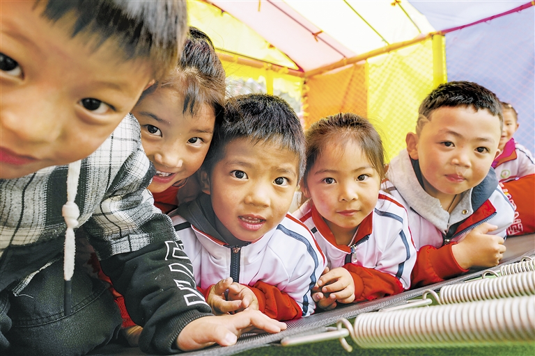 圖為昌都市邊壩縣第一小學(xué)的孩子們?cè)谡n間快樂(lè)地玩耍。記者 丹增群培 攝