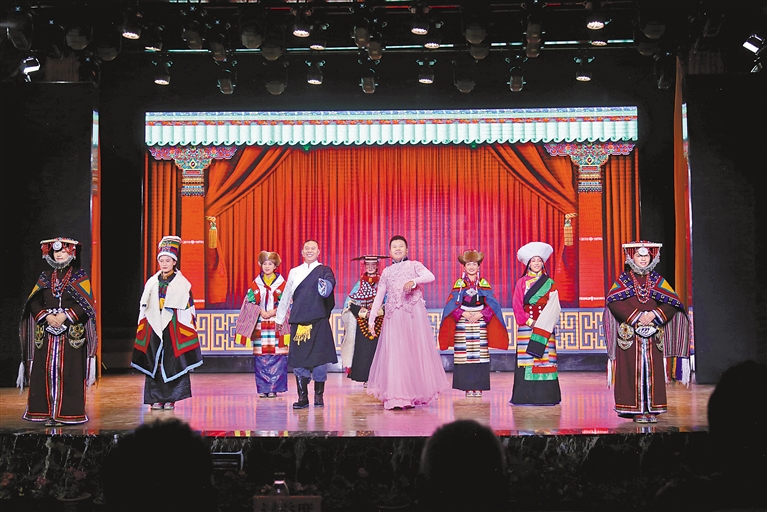 圖為阿里地區(qū)象雄藝術(shù)團的作品《趣說阿里》演出現(xiàn)場。記者 潘璐 攝
