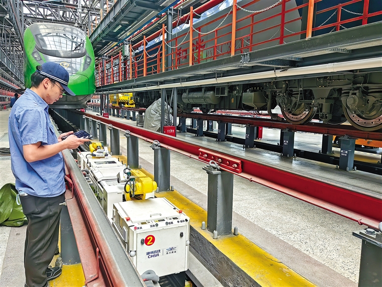 中國鐵路青藏集團(tuán)有限公司格爾木機(jī)務(wù)段拉薩機(jī)輛整備中心動集檢修庫是動車檢修基地,擔(dān)負(fù)著動車組的日常檢修、定期修及專項(xiàng)修任務(wù)。在暑運(yùn)客流高峰期間,三組動車組全部上線運(yùn)行,該段加大對動車組入庫檢修整備力度,采用智能檢測機(jī)器人對高原動集軌旁、車底部進(jìn)行自動檢測、分析及診斷,并對相關(guān)部位零部件外觀故障進(jìn)行識別和報(bào)警,實(shí)現(xiàn)了“人檢”向“機(jī)檢”的轉(zhuǎn)變。