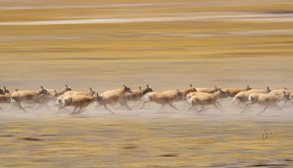 2024年6月13日,遷徙中的藏羚羊在西藏羌塘國家級(jí)自然保護(hù)區(qū)奔跑。