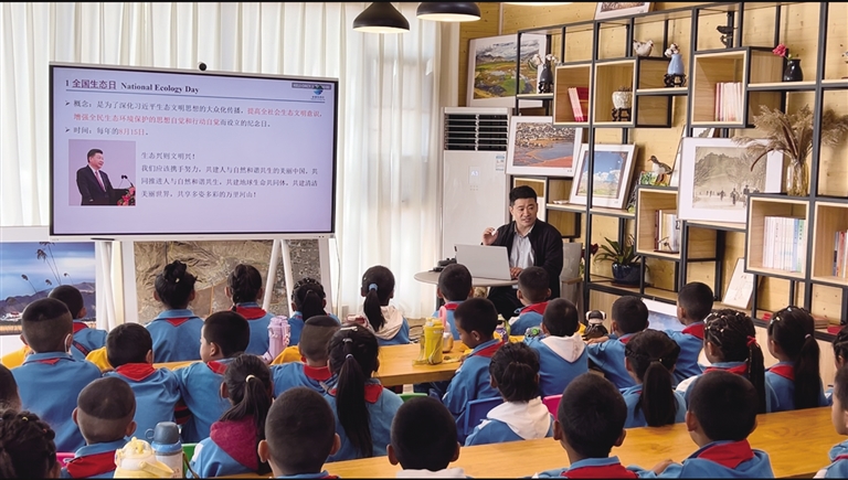 現(xiàn)場,拉魯濕地“生態(tài)科普小教室”工作人員為學(xué)生們播放紀(jì)錄片《拉魯濕地生命奇遇》,讓學(xué)生們聆聽拉魯濕地的故事、感受拉魯濕地不一樣的生命奧妙。該紀(jì)錄片主要展現(xiàn)拉魯濕地國家級自然保護(hù)區(qū)四季美景、豐富的生物多樣性以及濕地近年來的保護(hù)成果等。