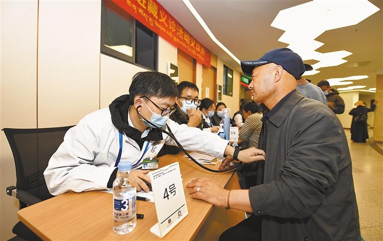 圖為醫(yī)療專家為就診群眾聽診。記者 唐斌 攝