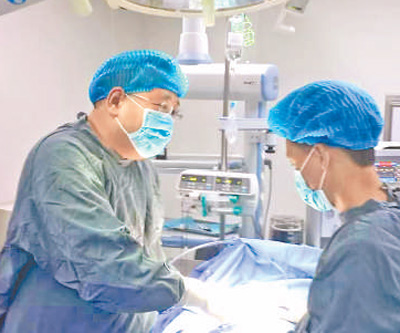侯坤(左)正在開(kāi)展手術(shù)。旦增歐珠攝