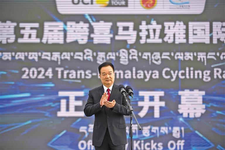 21日上午,2024中國西藏第五屆跨喜馬拉雅國際公路自行車極限賽在拉薩市布達(dá)拉宮廣場隆重開幕。自治區(qū)黨委書記王君正出席開幕式并宣布本屆比賽開幕。